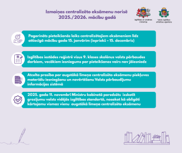 Apstiprināts 2025./2026. mācību gada valsts pārbaudes darbu grafiks un izmaiņas centralizēto eksāmenu norisē