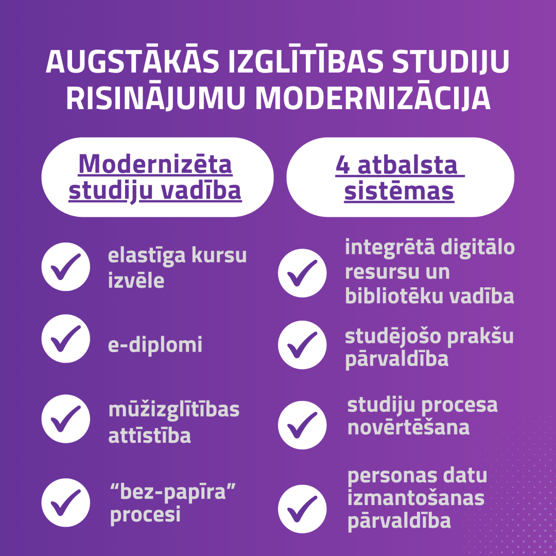 Augstākās izglītības studiju risinājumu modernizācija līdz 2029. gada beigām
