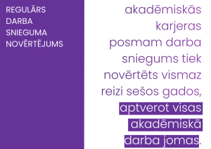 - Prognozējama karjeras attīstība: noteikti četri akadēmiskās karjeras posmi un vienoti principi akadēmiskā personāla atlasei, novērtēšanai un profesionālajai pilnveidei;