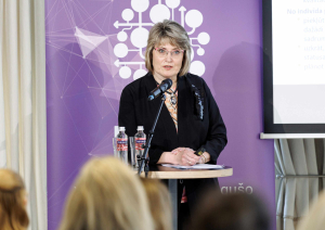 Semināru atklāja IZM Profesionālās un pieaugušo izglītības departamenta direktora vietniece pieaugušo izglītības jomā Jeļena Muhina sveicot semināra dalībniekus klātienē un tiešraidē, un uzsverot, ka ir jāturpina iesāktais darbs digitālās plaisas mazināšanai sabiedrībā.
