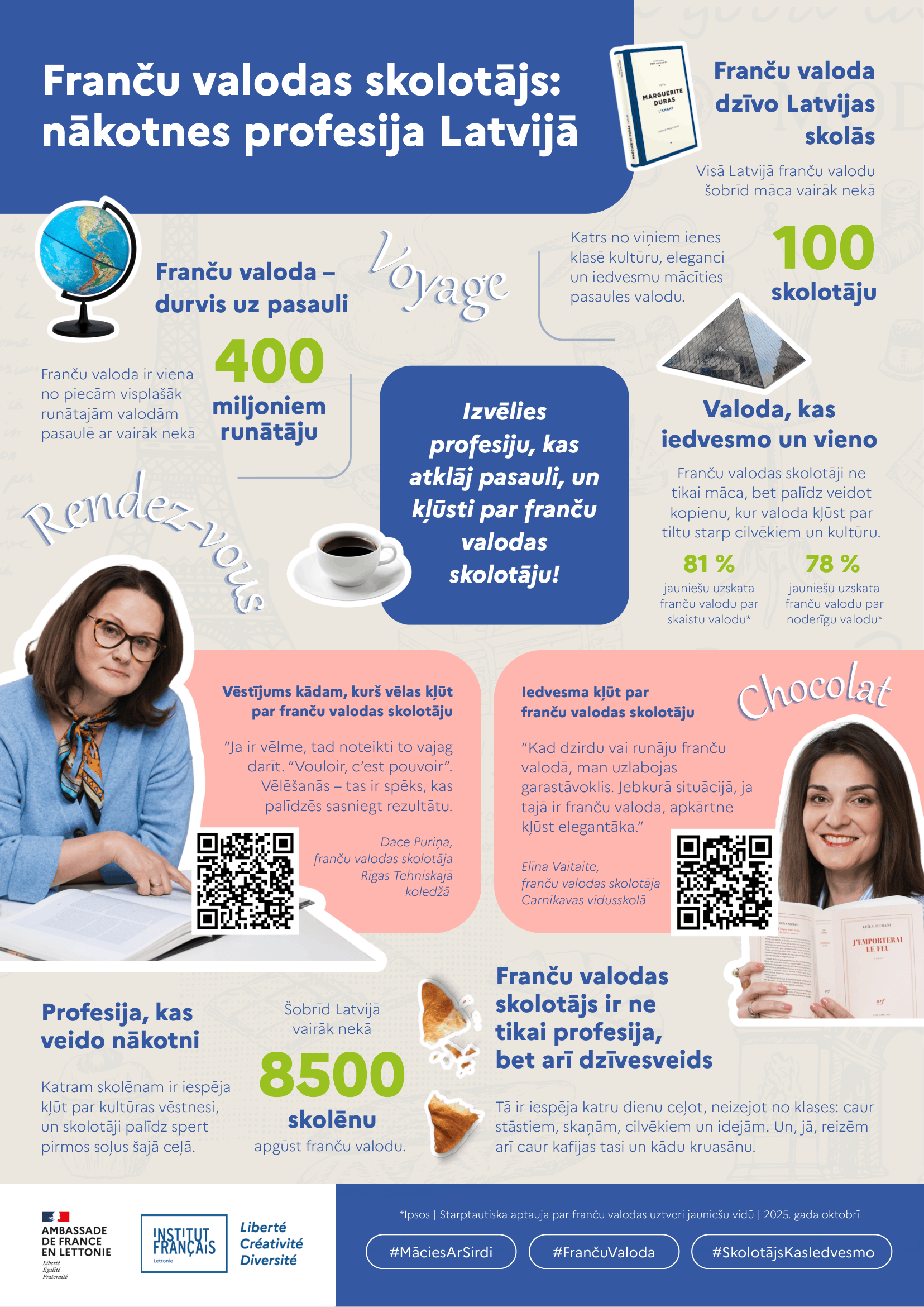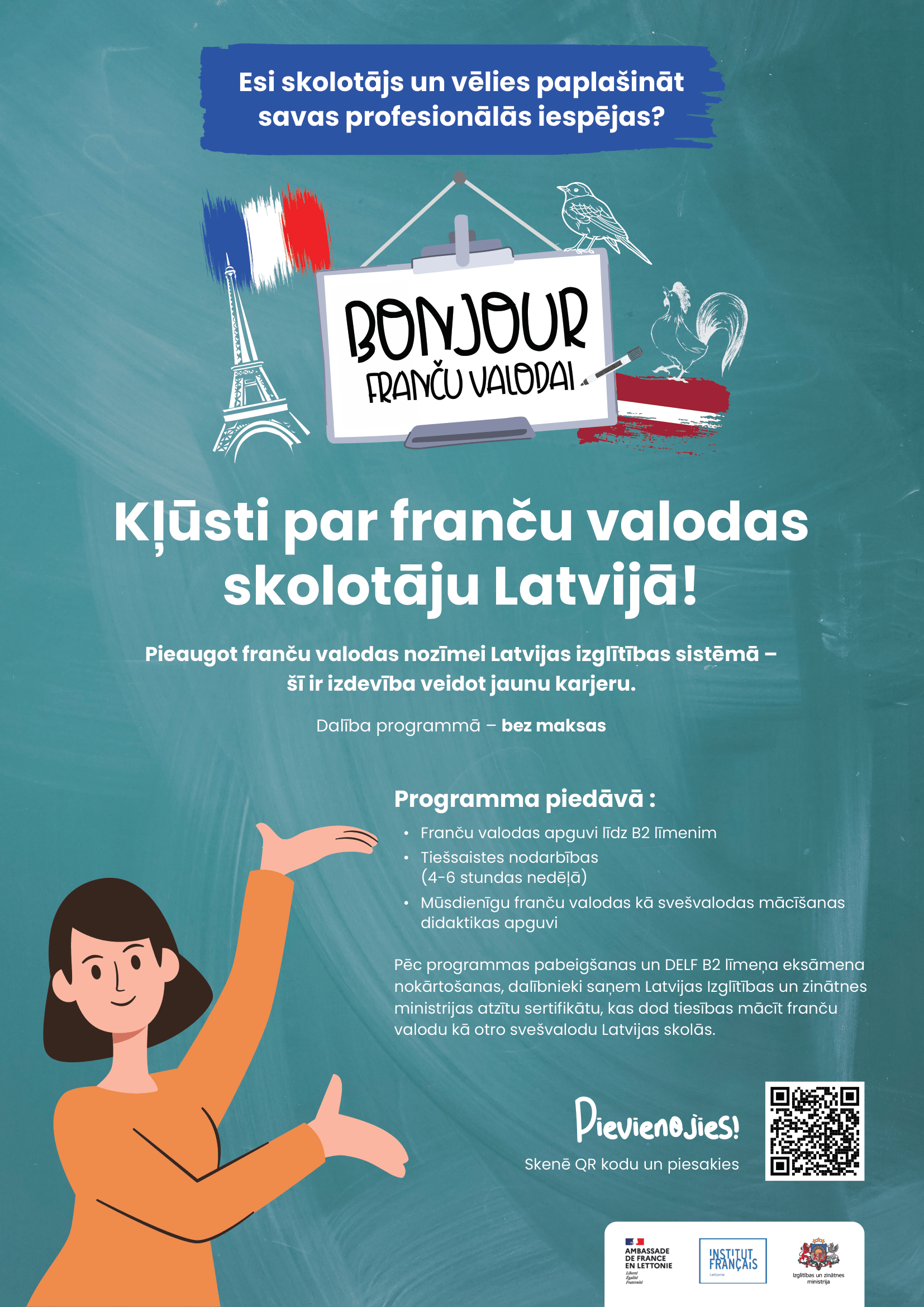 - iespēju kļūt par daļu no aktīvas franču valodas skolotāju kopienas Latvijā,